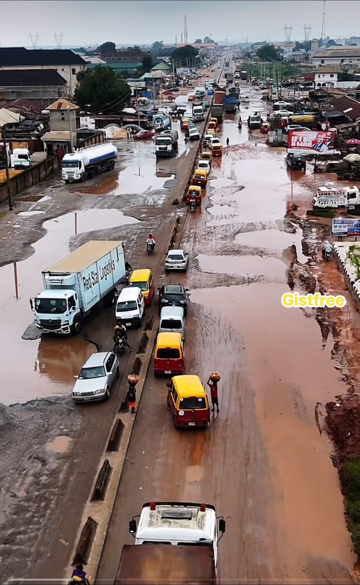2. Overloading – The road bears an unregulated flow of tankers, trailers, and haulage trucks far above capacity.
