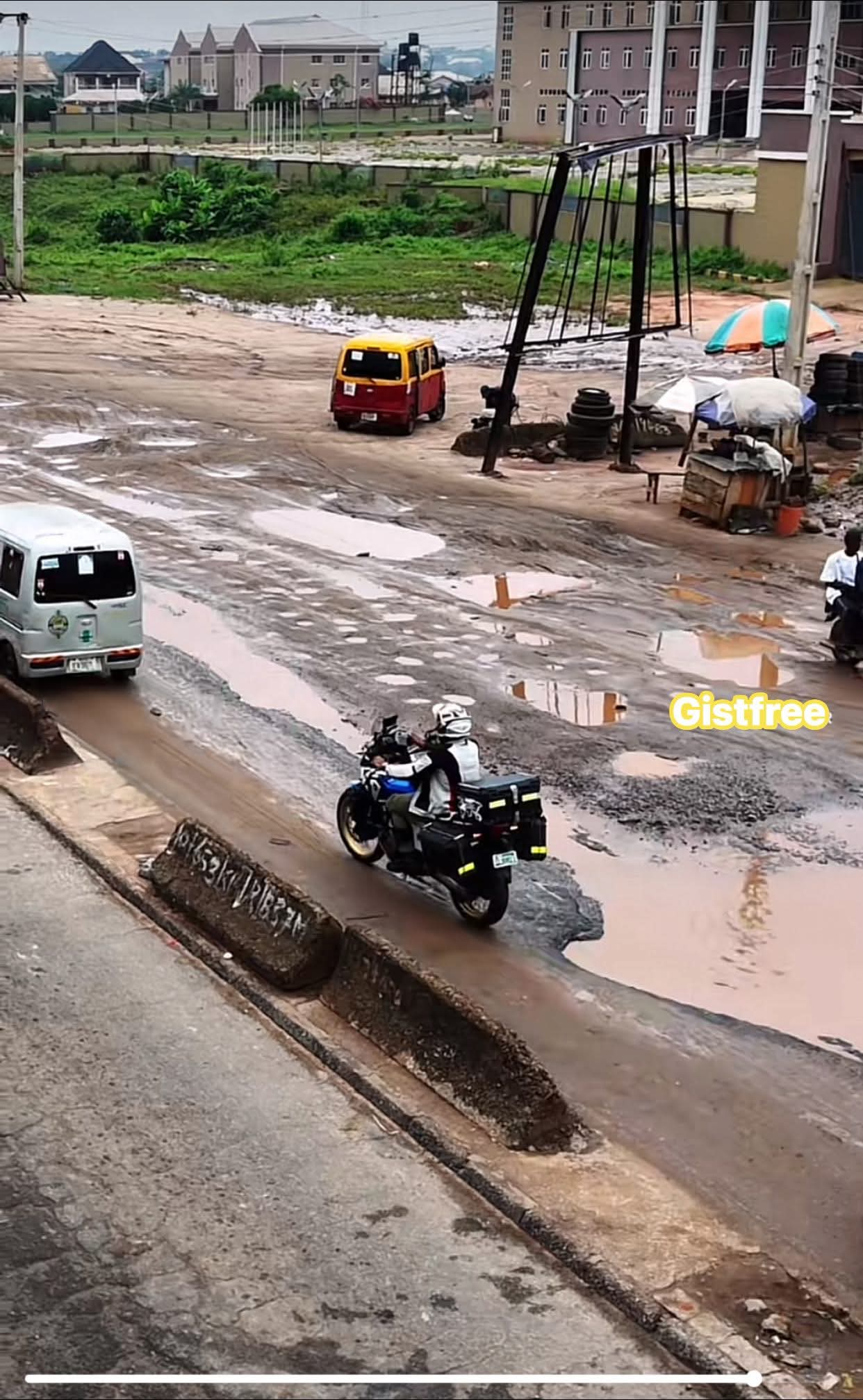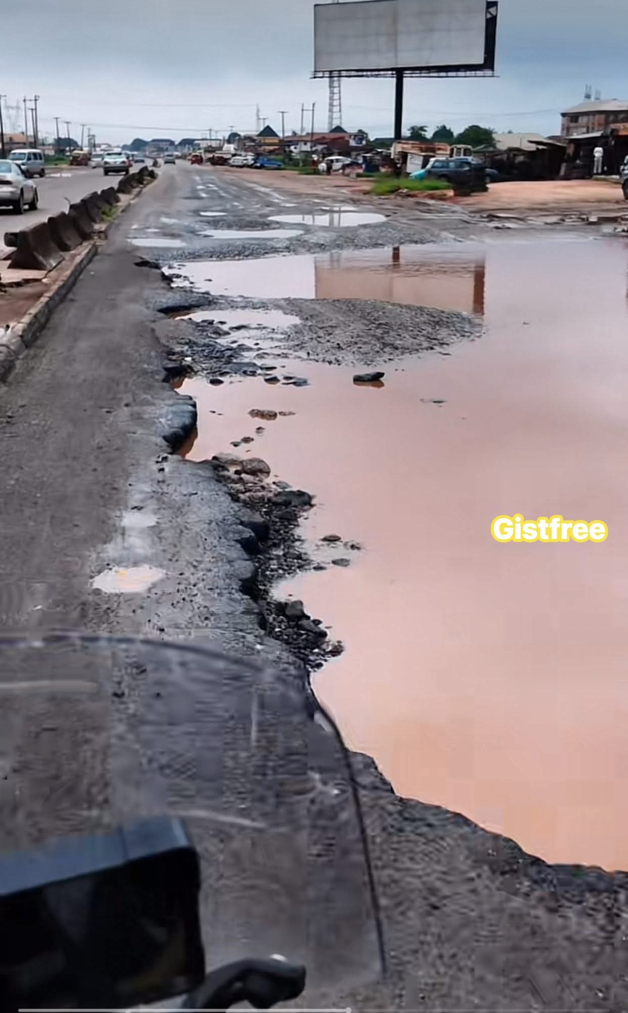 - Deep, waterlogged potholes force vehicles to weave dangerously into oncoming lanes.